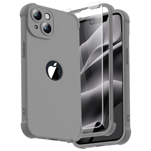 ORETECH for iPhone 13 Case, with [2 Pack Tempered Glass Screen Protector] [Camera Lens Guard] [15FT Military Grade Drop Test] 360° Shockproof Slim Fit Rubber Bumper Phone Cover - Space Grey