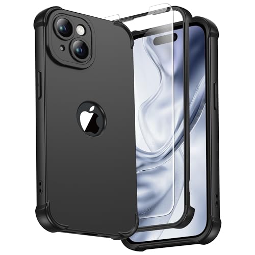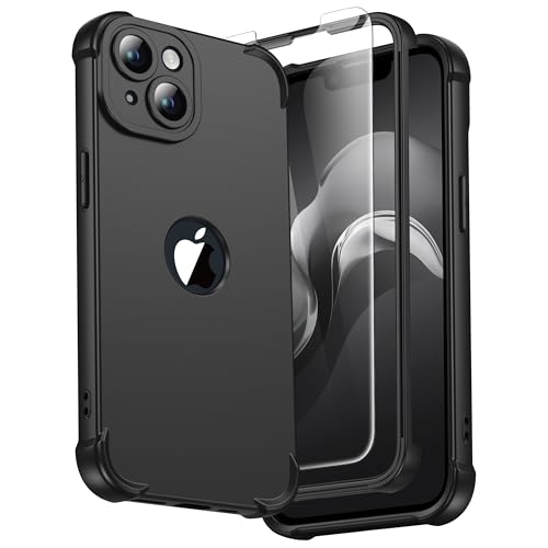 ORETECH for iPhone 15 Plus Case 6.7 inch, with [2 Pack Screen Protector] [Camera Lens Guard] [15FT Military Grade Drop Test] 360° Shockproof Slim Fit Design Rubber Bumper Phone Cover - Black