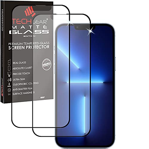 TECHGEAR 2 Pack Anti Glare Screen Protector Compatible with iPhone 16e 2025, iPhone 14, iPhone 13, iPhone 13 Pro - MATTE 3D GLASS Edition Genuine Tempered Glass Full Screen Protector Guard Cover