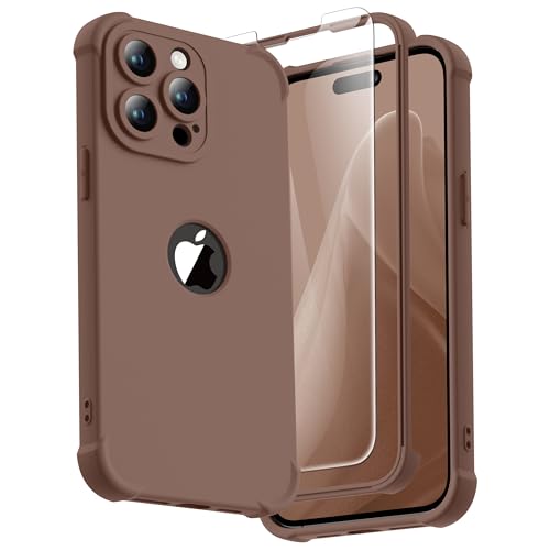ORETECH for iPhone 14 Pro Max Case 6.7 inch, with [2 Pack Screen Protector] [Camera Lens Guard] [15FT Military Grade Drop Test] 360° Shockproof Slim Fit Design Rubber Bumper Phone Cover - Brown