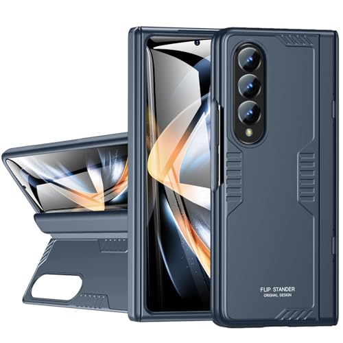 for Samsung Galaxy Z-Fold-4 Case: Hidden Kickstand & Hinge Guard | Slim Soft Case with Screen Protector | Phone Stand Cover for Z Fold 4 5G 2022 (Blue)
