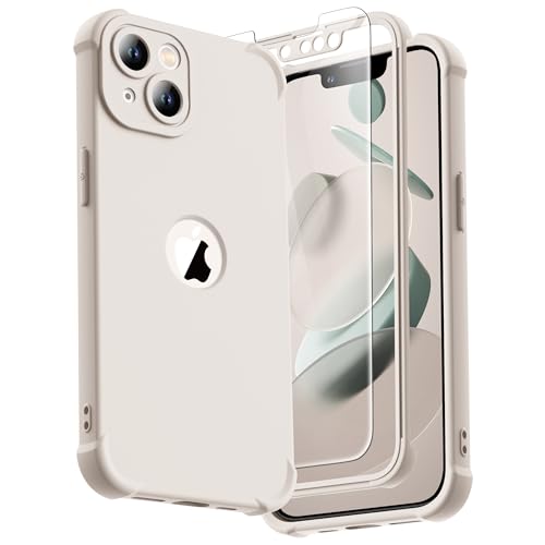 ORETECH for iPhone 13 Case, with [2 Pack Tempered Glass Screen Protector] [Camera Lens Guard] [15FT Military Grade Drop Test] 360° Shockproof Slim Fit Rubber Bumper Phone Cover - Stone White