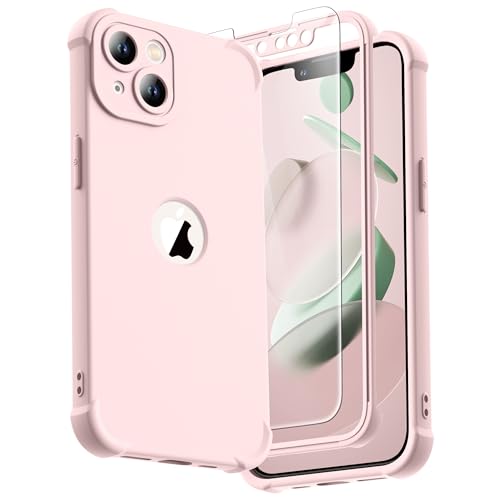 ORETECH for iPhone 13 Case, with [2 Pack Tempered Glass Screen Protector] [Camera Lens Guard] [15FT Military Grade Drop Test] 360° Shockproof Slim Fit Rubber Bumper Phone Cover - Baby Pink