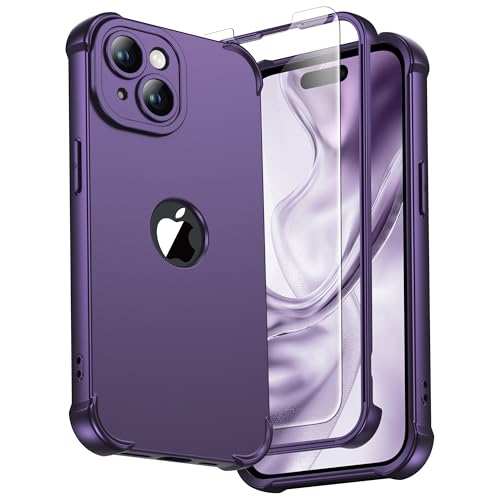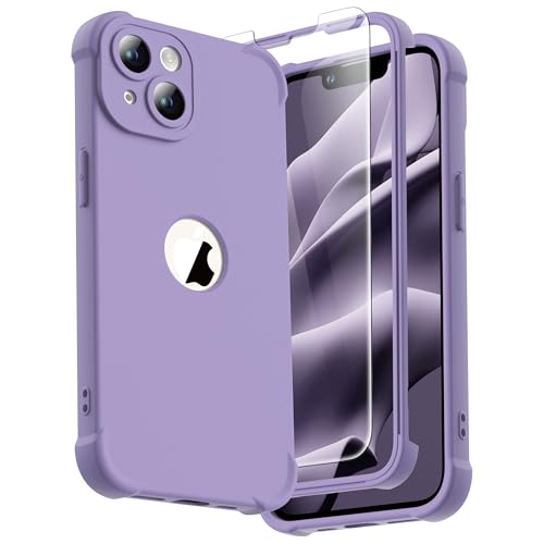 ORETECH for iPhone 15 Plus Case 6.7 inch, with [2 Pack Screen Protector] [Camera Lens Guard] [15FT Military Grade Drop Test] 360° Shockproof Slim Fit Design Rubber Bumper Phone Cover - Purple
