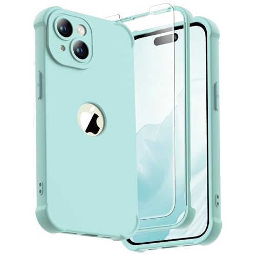 ORETECH for iPhone 15 Plus Case 6.7 inch, with [2 Pack Screen Protector] [Camera Lens Guard] [15FT Military Grade Drop Test] 360° Shockproof Slim Fit Design Rubber Bumper Phone Cover - Mint
