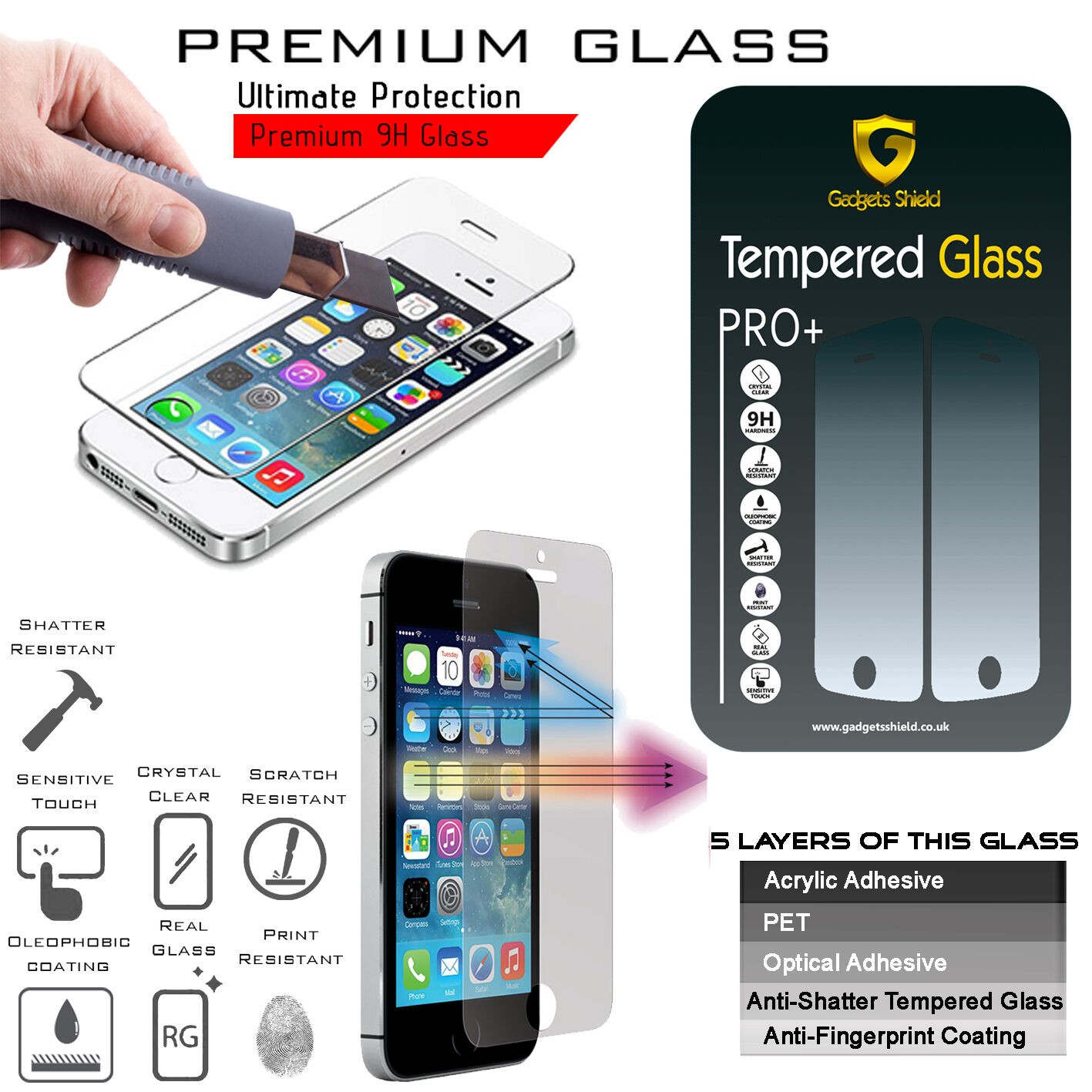 Tempered Glass Screen Protector Guard 100% Genuine Gadget Shield-iPhone SE 5S 5C