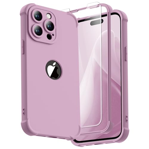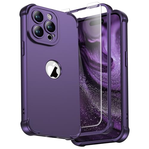 ORETECH for iPhone 15 Pro Case 6.1 inch, with [2 Pack Screen Protector] [Camera Lens Guard] [15FT Military Grade Drop Test] 360° Shockproof Slim Fit Design Rubber Bumper Phone Cover - Dark Purple