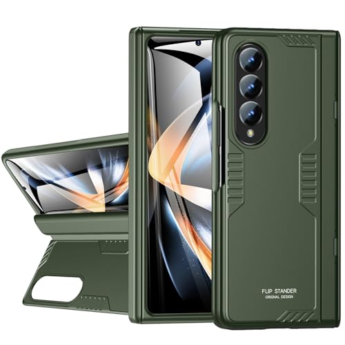 for Samsung Galaxy Z-Fold-4 Case: Hidden Kickstand & Hinge Guard | Slim Soft Case with Screen Protector | Phone Stand Cover for Z Fold 4 5G 2022 (Green)