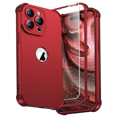 ORETECH for iPhone 15 Pro Case 6.1 inch, with [2 Pack Screen Protector] [Camera Lens Guard] [15FT Military Grade Drop Test] 360° Shockproof Slim Fit Design Rubber Bumper Phone Cover - Red