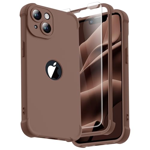 ORETECH for iPhone 14 Case 6.1 inch, with [2 Pack Screen Protector] [Camera Lens Guard] [15FT Military Grade Drop Test] 360° Shockproof Slim Fit Design Rubber Bumper Phone Cover - Brown
