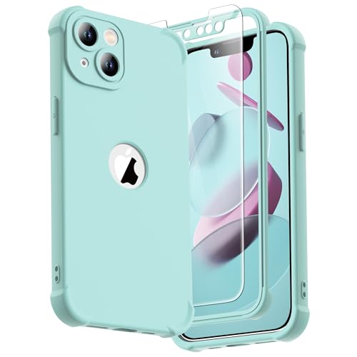 ORETECH for iPhone 13 Case, with [2 Pack Tempered Glass Screen Protector] [Camera Lens Guard] [15FT Military Grade Drop Test] 360° Shockproof Slim Fit Rubber Bumper Phone Cover - Mint