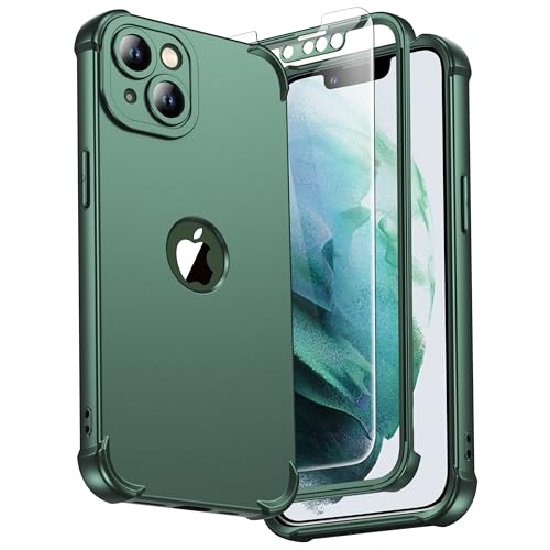 ORETECH for iPhone 15 Plus Case 6.7 inch, with [2 Pack Screen Protector] [Camera Lens Guard] [15FT Military Grade Drop Test] 360° Shockproof Slim Fit Design Rubber Bumper Phone Cover - Green