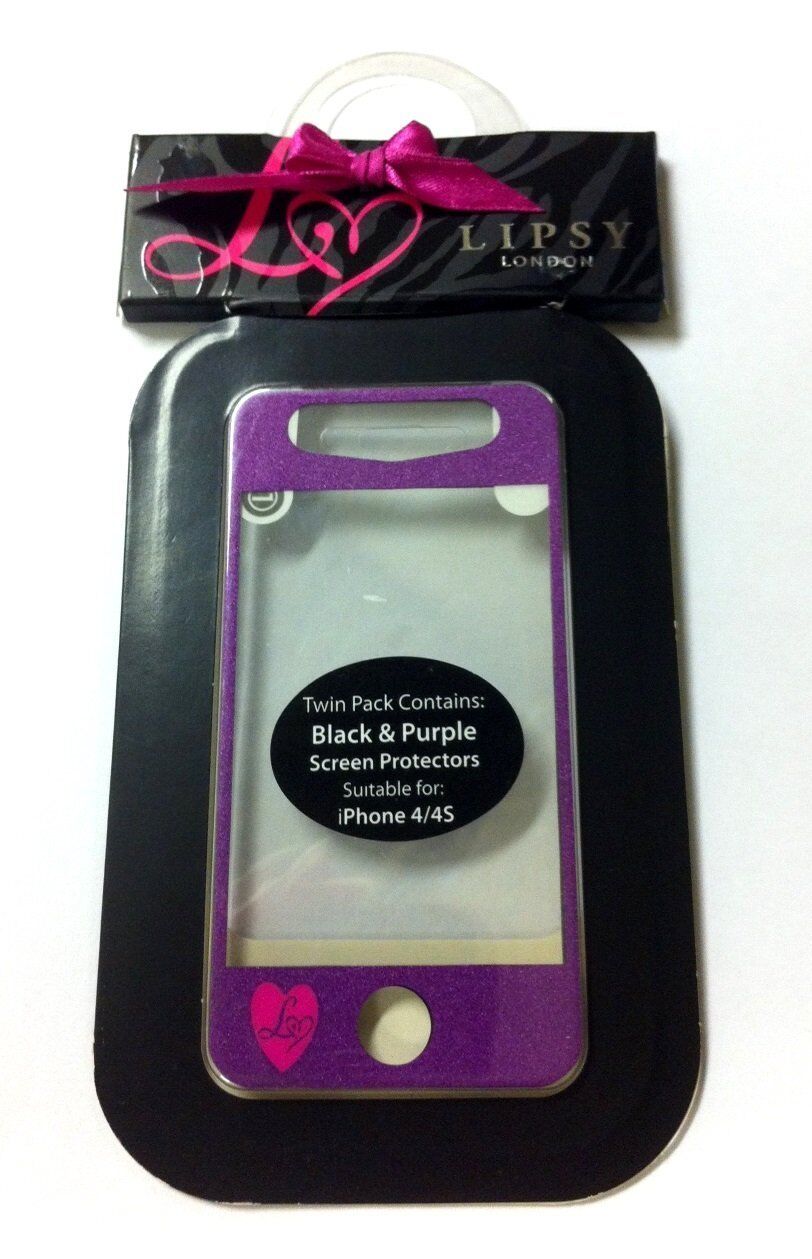 2 x Lipsy London iPhone 4S/4 Screen Protector/Guard/Overlay Black & Purple