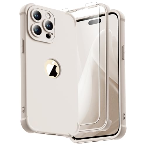 ORETECH for iPhone 14 Pro Max Case 6.7 inch, with [2 Pack Screen Protector] [Camera Lens Guard] [15FT Military Grade Drop Test] 360° Shockproof Slim Fit Design Rubber Bumper Phone Cover - Stone White