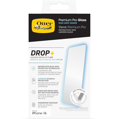 OtterBox Premium Pro Glass Screen Protector with Blue Light Guard for iPhone 16, Tempered Glass, Superior Scratch Protection, Survives Drops up to 6ft