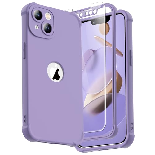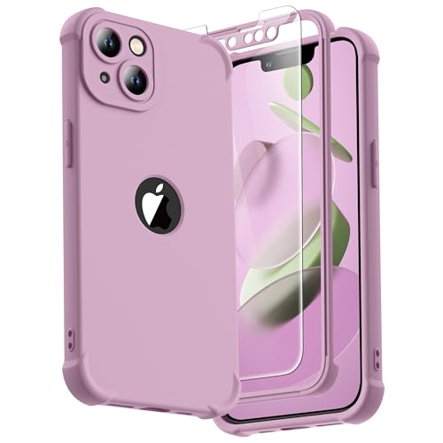 ORETECH for iPhone 13 Case, with [2 Pack Tempered Glass Screen Protector] [Camera Lens Guard] [15FT Military Grade Drop Test] 360° Shockproof Slim Fit Rubber Bumper Phone Cover - Lilac
