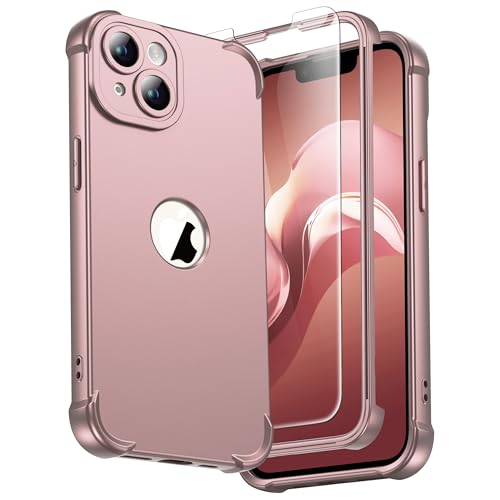ORETECH for iPhone 13 Case, with [2 Pack Tempered Glass Screen Protector] [Camera Lens Guard] [15FT Military Grade Drop Test] 360° Shockproof Slim Fit Rubber Bumper Phone Cover - Rose Gold