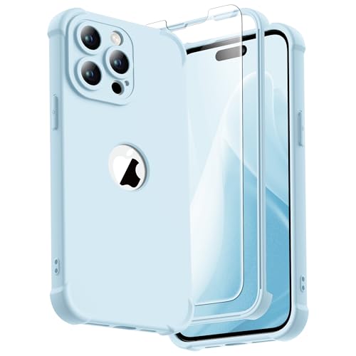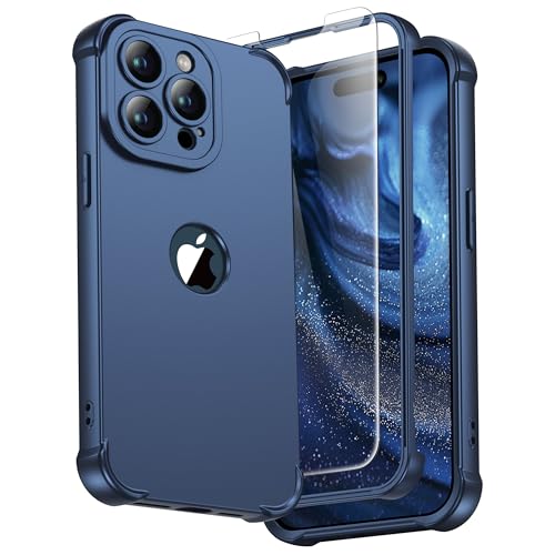 ORETECH for iPhone 15 Pro Case 6.1 inch, with [2 Pack Screen Protector] [Camera Lens Guard] [15FT Military Grade Drop Test] 360° Shockproof Slim Fit Design Rubber Bumper Phone Cover - Blue