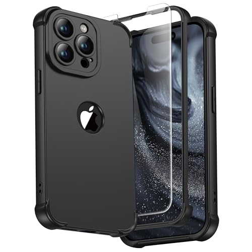 ORETECH for iPhone 15 Pro Case 6.1 inch, with [2 Pack Screen Protector] [Camera Lens Guard] [15FT Military Grade Drop Test] 360° Shockproof Slim Fit Design Rubber Bumper Phone Cover - Black