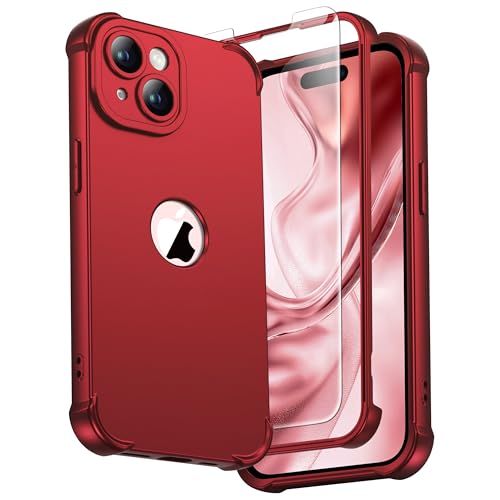 ORETECH for iPhone 15 Plus Case 6.7 inch, with [2 Pack Screen Protector] [Camera Lens Guard] [15FT Military Grade Drop Test] 360° Shockproof Slim Fit Design Rubber Bumper Phone Cover - Red