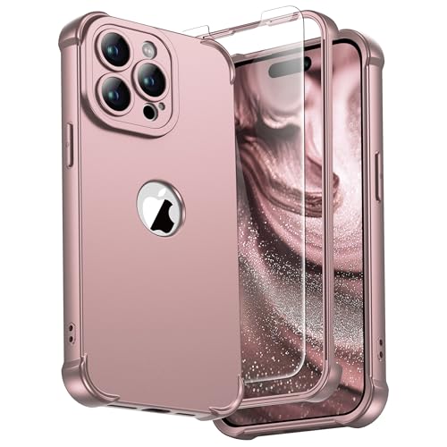 ORETECH for iPhone 15 Pro Case 6.1 inch, with [2 Pack Screen Protector] [Camera Lens Guard] [15FT Military Grade Drop Test] 360° Shockproof Slim Fit Design Rubber Bumper Phone Cover - Rose Gold