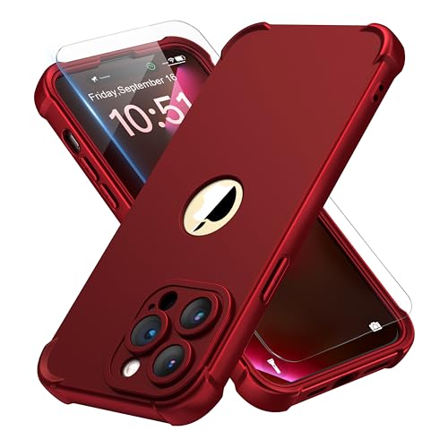 ORETECH for iPhone 15 Pro Max Case 6.7 inch, with [2 Pack Screen Protector] [Camera Lens Guard] [15FT Military Grade Drop Test] 360° Shockproof Slim Fit Design Rubber Bumper Phone Cover - Red
