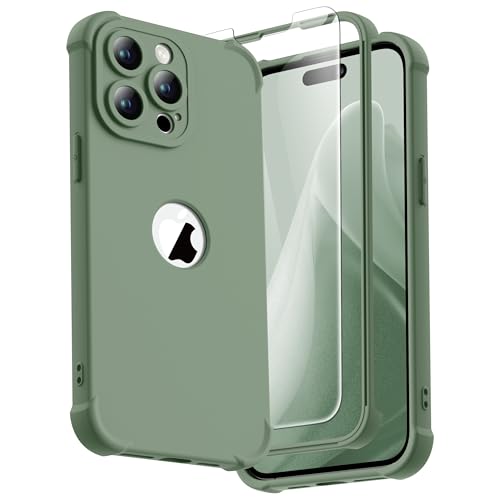 ORETECH for iPhone 15 Pro Case 6.1 inch, with [2 Pack Screen Protector] [Camera Lens Guard] [15FT Military Grade Drop Test] 360° Shockproof Slim Fit Design Rubber Bumper Phone Cover - Alpine Green