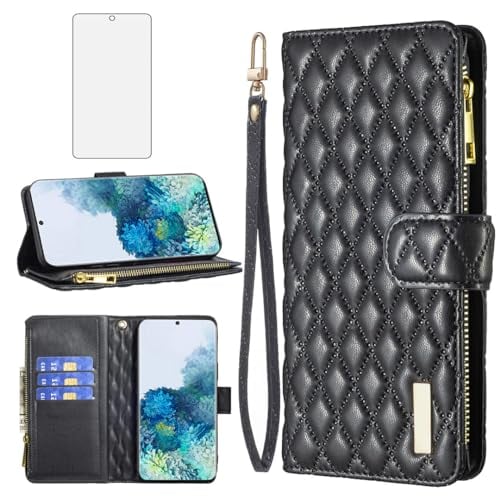 Asuwish Phone Case for Samsung Galaxy S20 Plus S20+ 5G Wallet Cover with Tempered Glass Screen Protector and Leather Flip Card Holder Stand Cell S20+5G S20plus 20S + S2O S 20 20+ G5 Women Girls Black