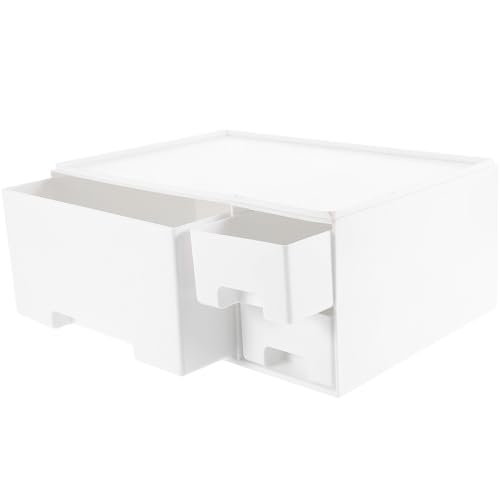 Levemolo Computer Monitor Riser with Drawer Storage, White Multifunctional Elevated Screen Stand Organizer for Office Desk and Laptop Accessories