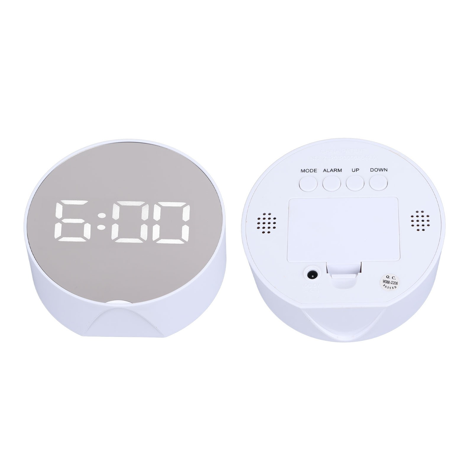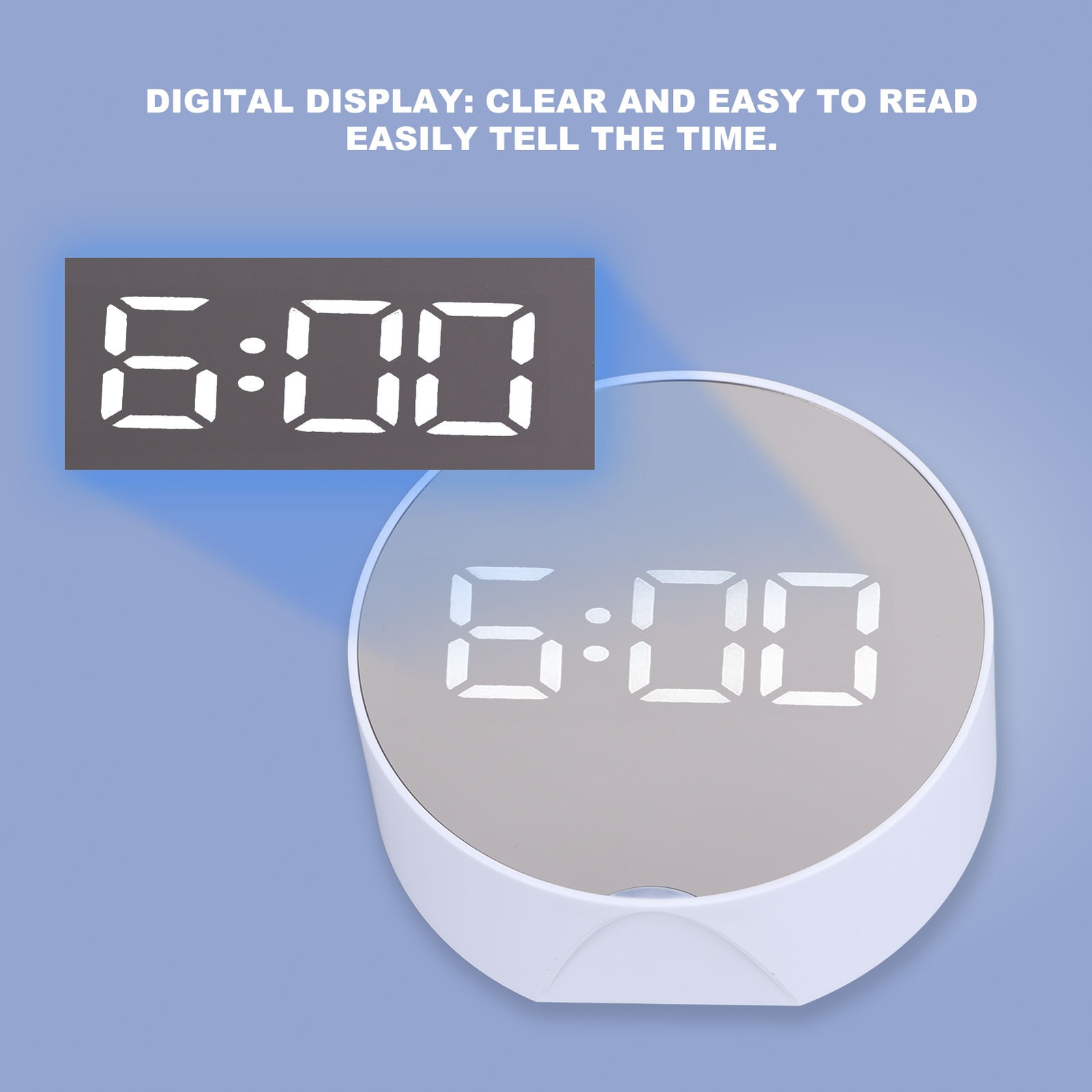 Digital Mirror Clock Alarm White Big Round Screen Easy to Read Portable LED Clock for Office Bedroom Travel