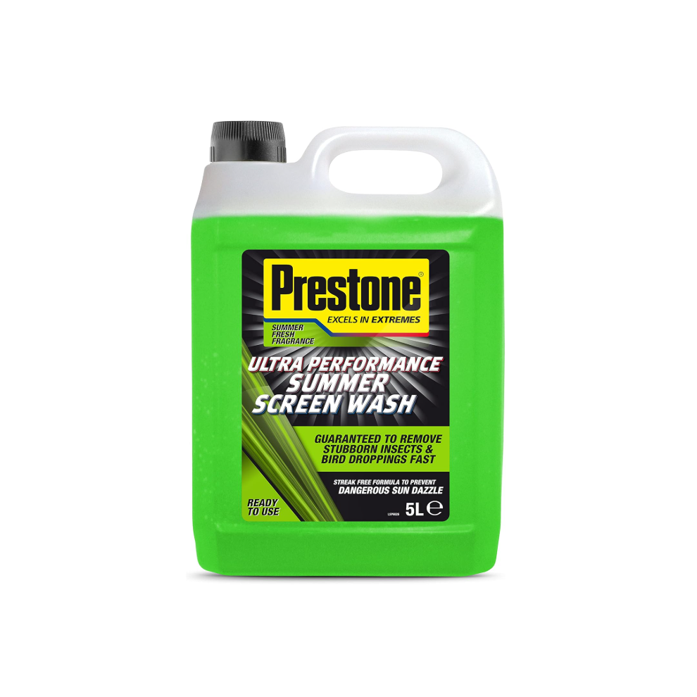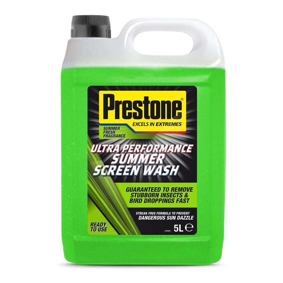 Prestone Screenwash, Ready To Use Screen Wash For Cars, High Performance Cleaning With Streak Free Formula, Maximum Visibility Summer Windscreen Washer Fluid, Removes Stubborn Dirt, 5L Bottle