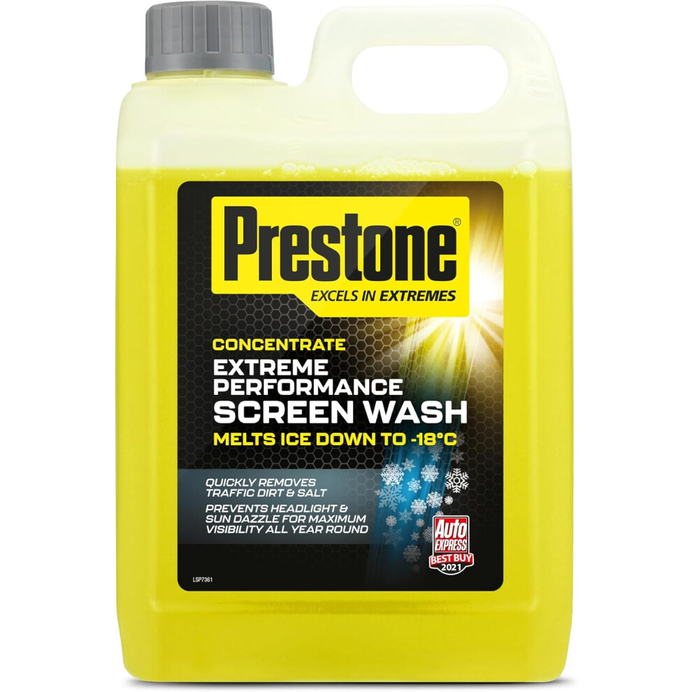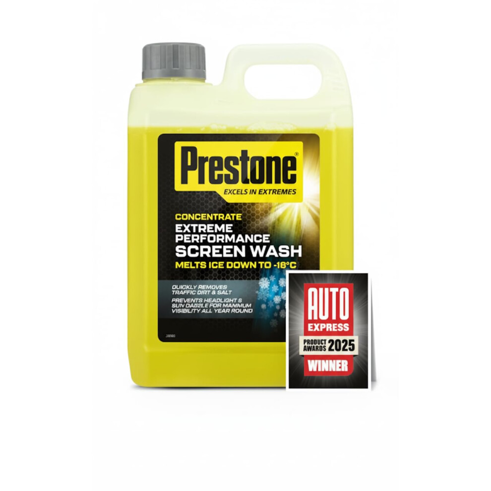 Prestone Screenwash Concentrate 2.5L, Screen Wash For Cars - Winter, High Performance Cleaning With Streak Free Formula, Extreme Performance