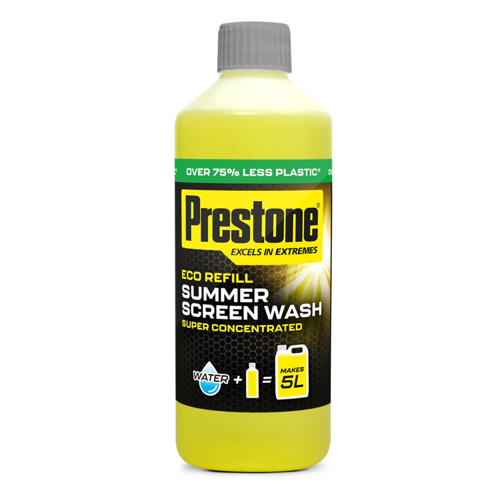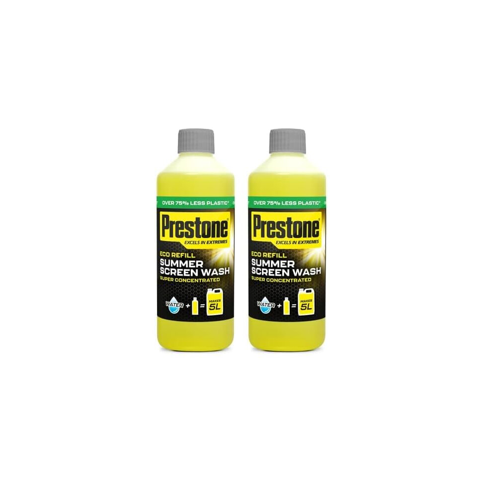 Prestone Eco Refill Summer Screenwash Concentrate, Summer Eco Screen Wash For Cars, High Performance Cleaning With Streak Free Formula, 500ml Super Concentrated Screenwash, 5L When Made Up
