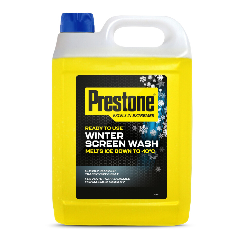 Prestone Screenwash, Ready To Use Screen Wash For Cars - Winter, High Performance Cleaning With Streak Free Formula, Maximum Visibility Winter Windscreen Washer Fluid, Removes Stubborn Dirt, 5L Bottle