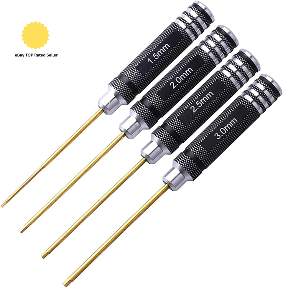 MMOBIEL Hex Screw Driver Set for RC Tools - Hexagon Screwdriver Set for RC Car, Boat, Quidcopter, Helicopter and More - 4 Pcs 1.5/2 / 2.5/3 mm Titanium Hexagon Screwdriver Kit