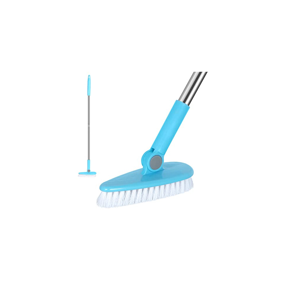 3-in-1 Floor Scrub Brush with Rotatable Head, Long Handle, Light Blue
