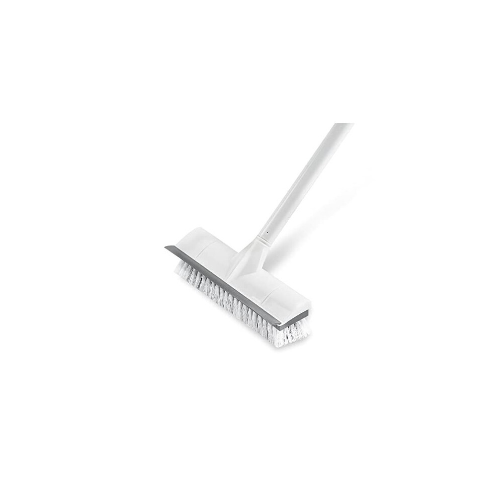 Floor Brush Scrubber Long Handle Floor Scrub Brush for Cleaning Patio Bathroom Garage Kitchen Simple White