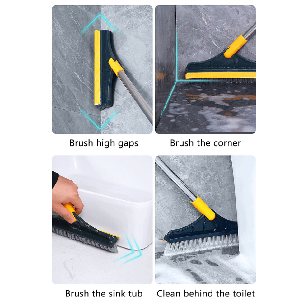 Floor Scrub Brush 2 In 1 Cleaning Brush Long Handle Removable Wiper Magic Broom Brush Squeegee Tile Kitchen Cleaning Tools