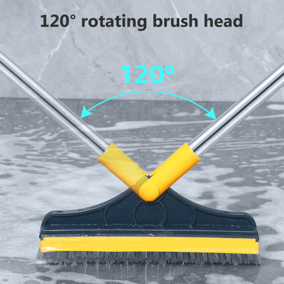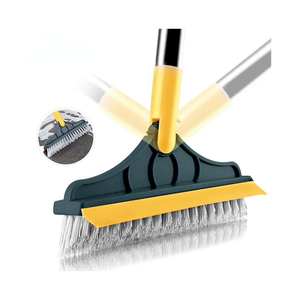 2 In 1 Floor Scrub Brush with Window Squeegee 120 Degrees Rotatable Long Handle Corner Gap Cleaning Brush for Cleaning Kitchen Bathroom Bat