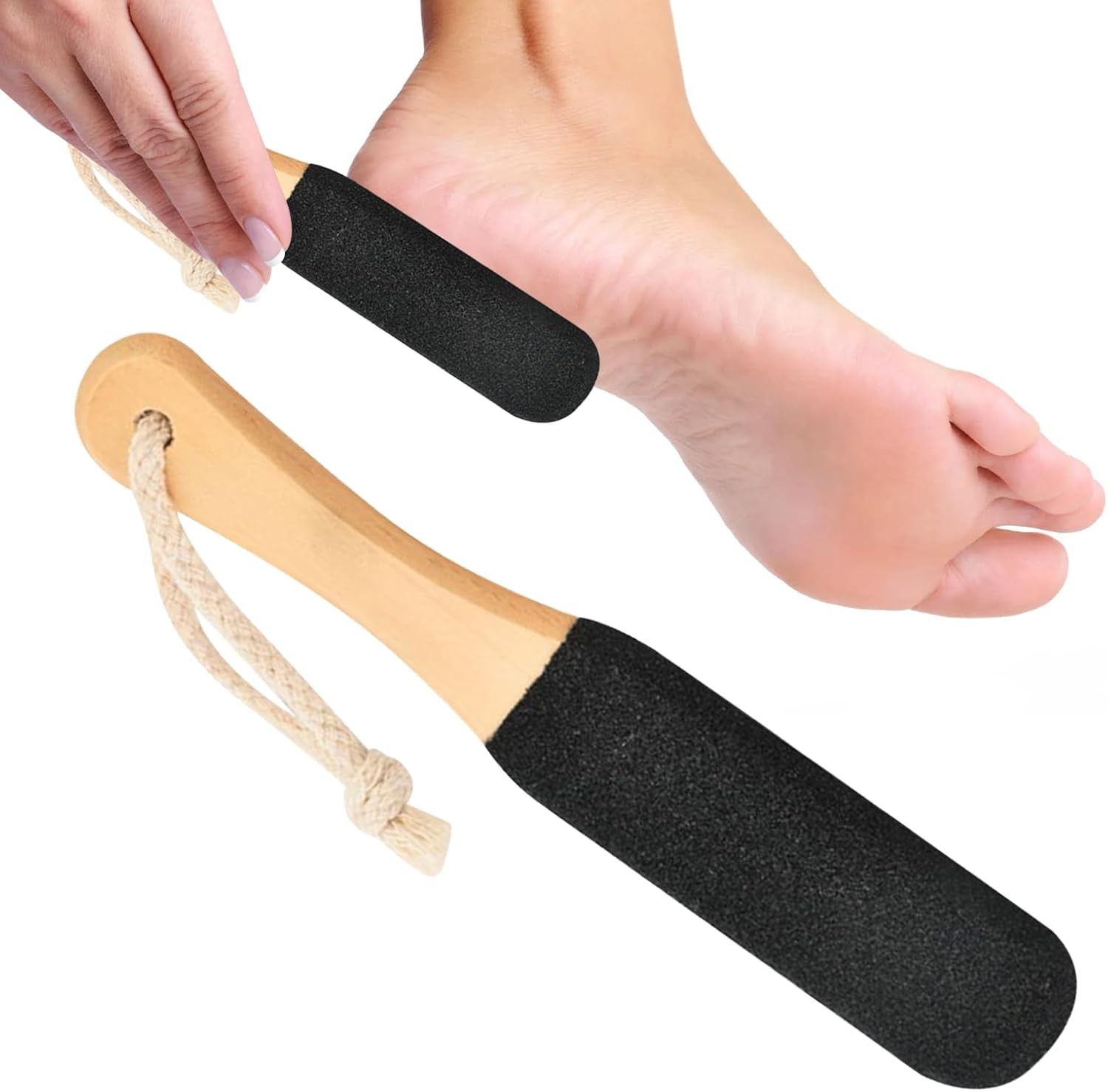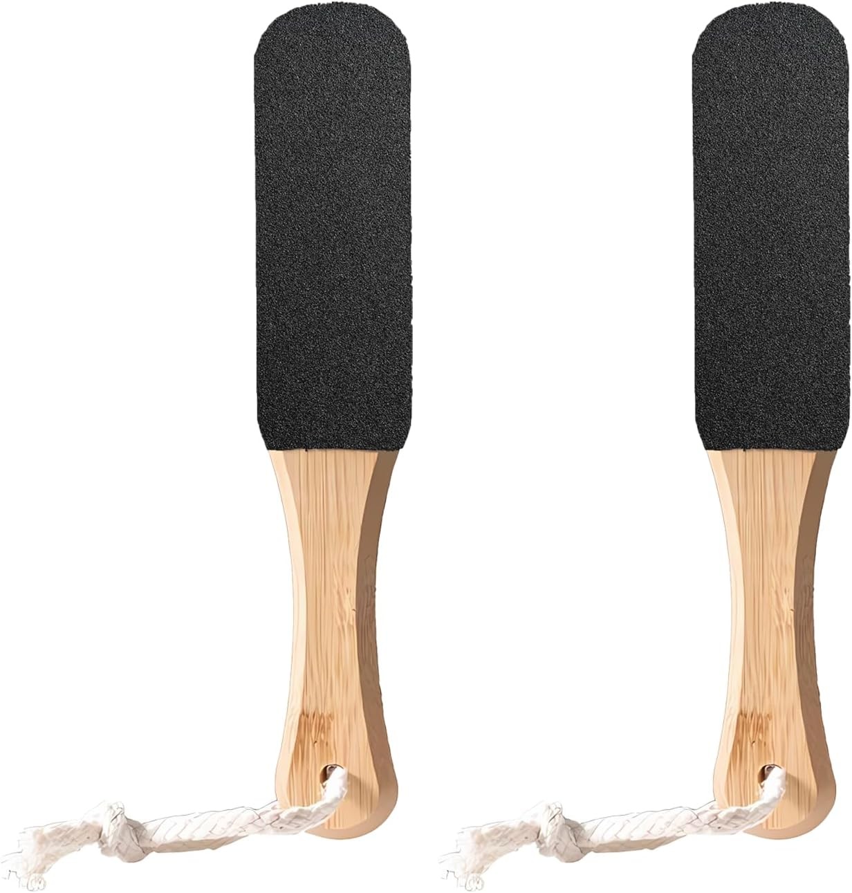 FVION Bamboo Foot File Callus Remover - Portable Foot Scrubber Pedicure Feet Sander File, Double-Sided Heel Scraper for Smooth and Soft Feet