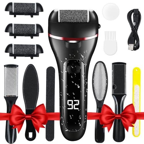 Electric Foot File Callus Remover,Wolady Waterproof Feet Hard Skin Remover Rechargeable with 3 Rollers and 2 Speeds,10 in 1 Foot Scrubber Pedicure Kit for Dead Skin Calluses Cracked Heel,Black