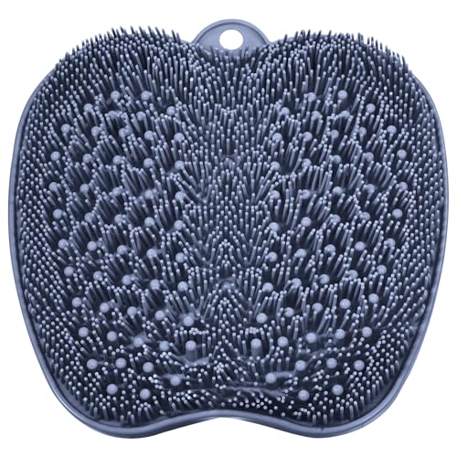 Back/Feet Scrubber for Shower,Silicone Shower Brush with Suction Cup for Cleaning & Exfoliating Skin,Floating Body Long Bristles for Wet or Dry Brushing,Cleans The Body Easily,30×25cm (Gray)
