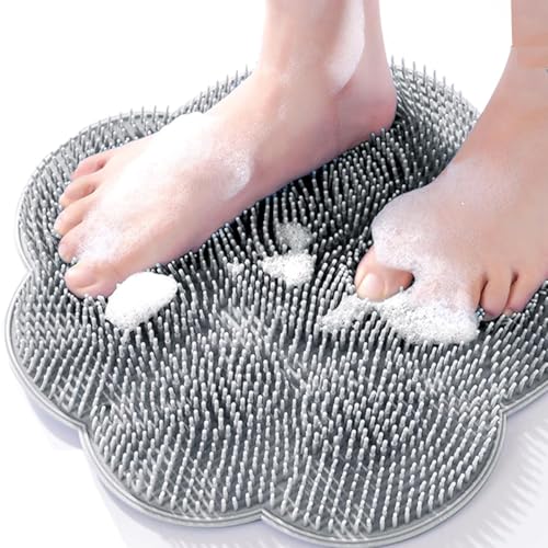 Defresit Larger Shower Foot Scrubber and Massager Mat with Non-Slip Suction Cups - Cleans, Exfoliates, Massages Feet Without Bending, Improves Foot Circulation, Relieves Tired Feet (Grey)