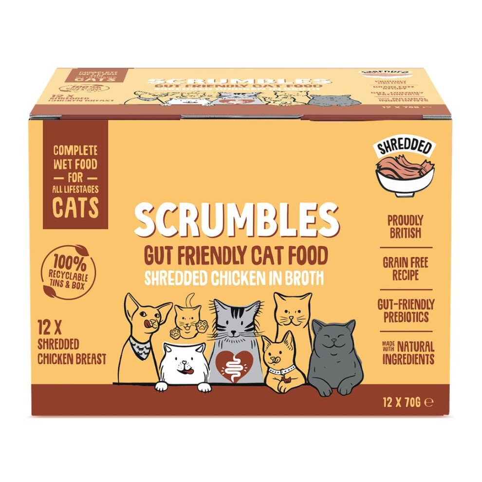 Scrumbles Natural Wet Cat Food, Shredded Chicken in Broth 12x 70g