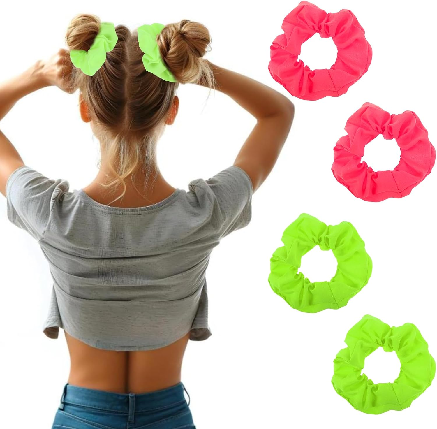 4 Pcs Neon Scrunchies for Hair 80S 90S Accessories Elastic Hair Ties Green Scrun