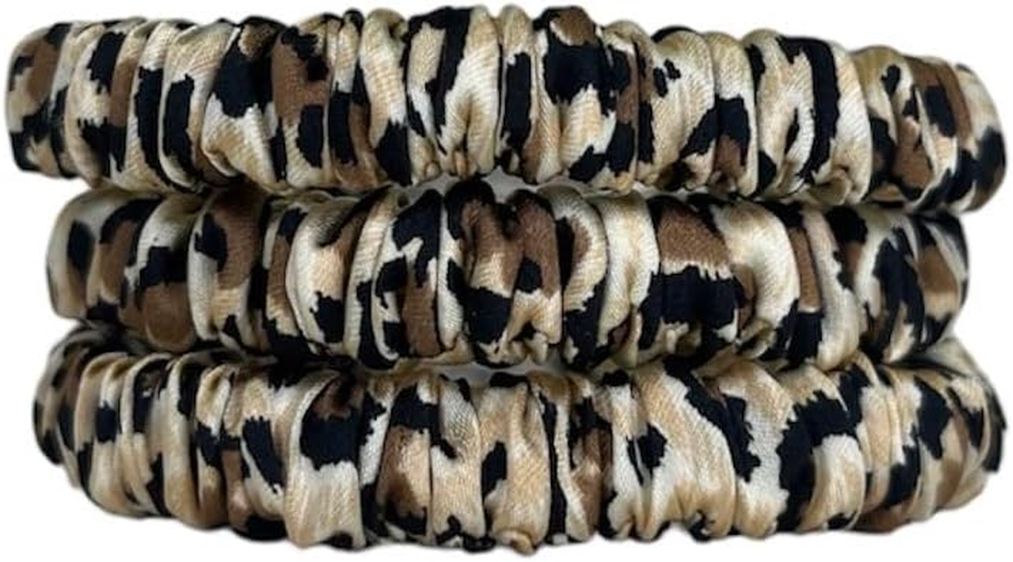 Pure Silk Charmeuse Scrunchie - Scrunchies for Hair (3 Pack Skinny Leopard Print