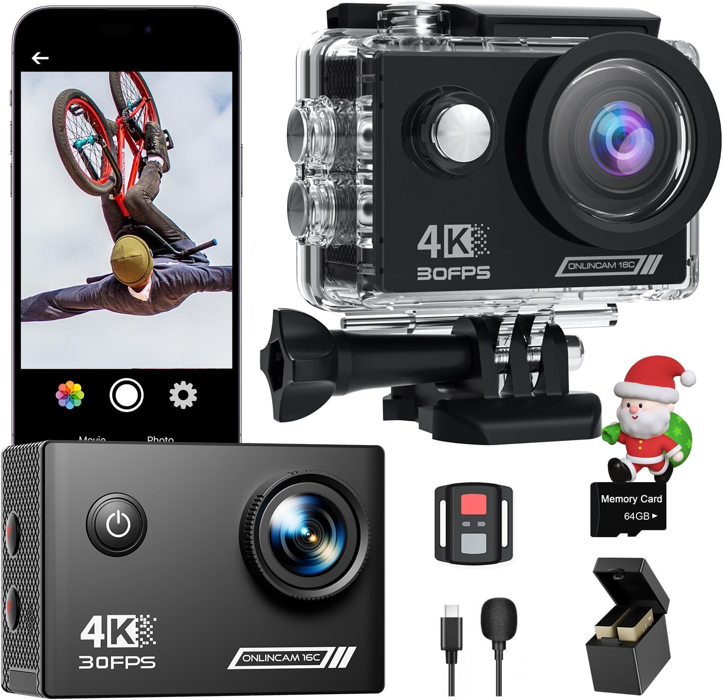 Yolansin 4K Waterproof Action Camera: 64G SD Card 131Ft Underwater Camera,Hd 20M