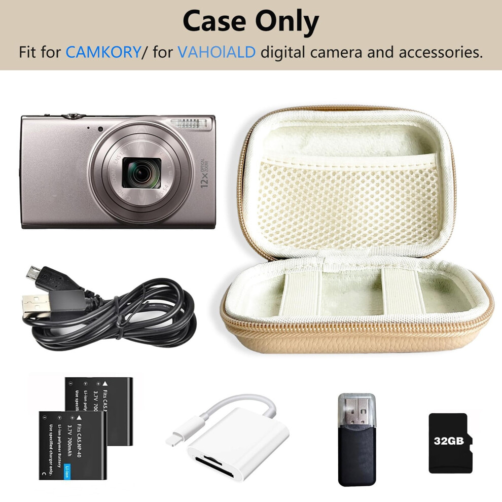 Veki Digital Camera Case Compatible With KODAK PIXPRO FZ45 FZ55 & CAMKORY DC403, Khaki Travel Carry Bag for 1080P Vlogging Cameras & SD Cards