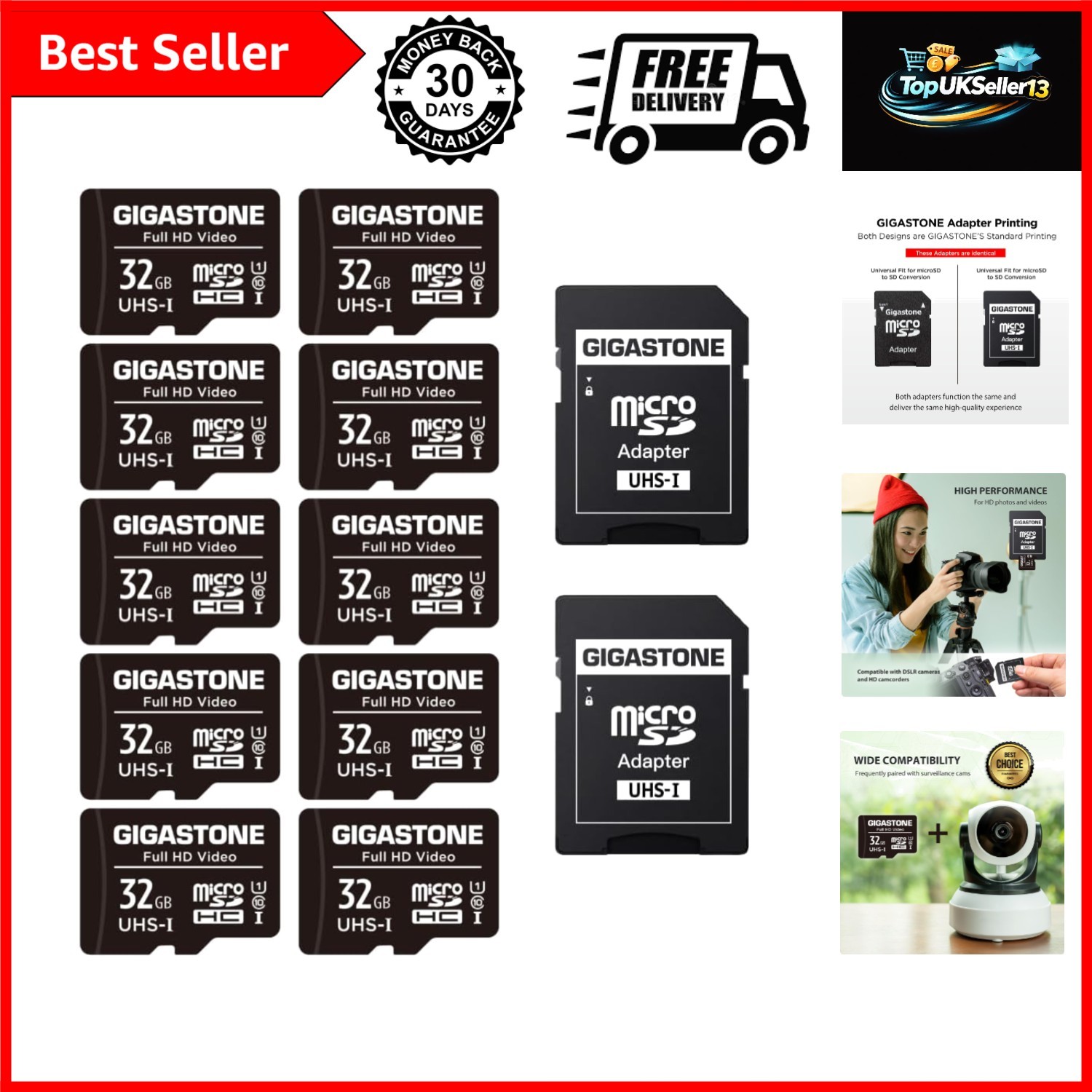 Versatile 10-Pack 32GB Micro SD Cards with Adapters - Ideal for Security Cameras
