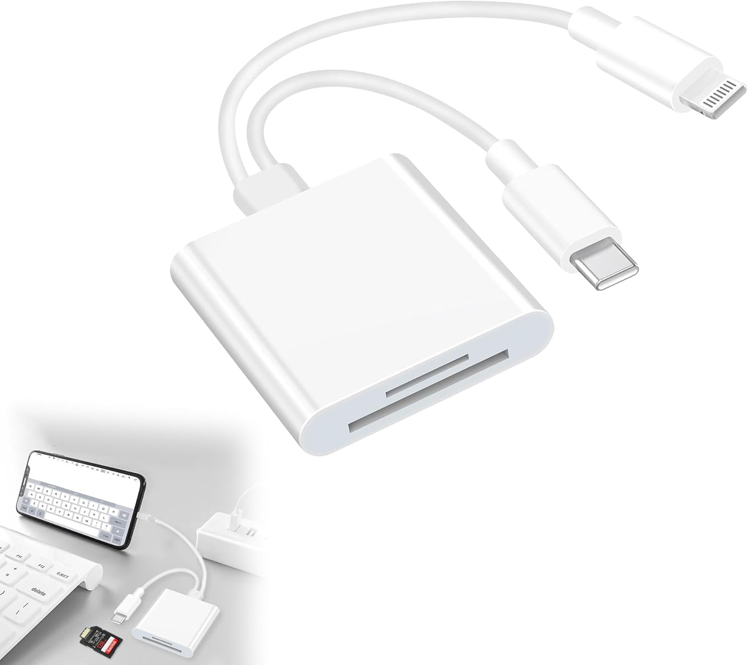 Apple Lightning To SD Card Camera Reader Adapter: Universal Compatibility, Memory Card Adapter for iPhone, iPad - Two-way Transfer & Plug and Play